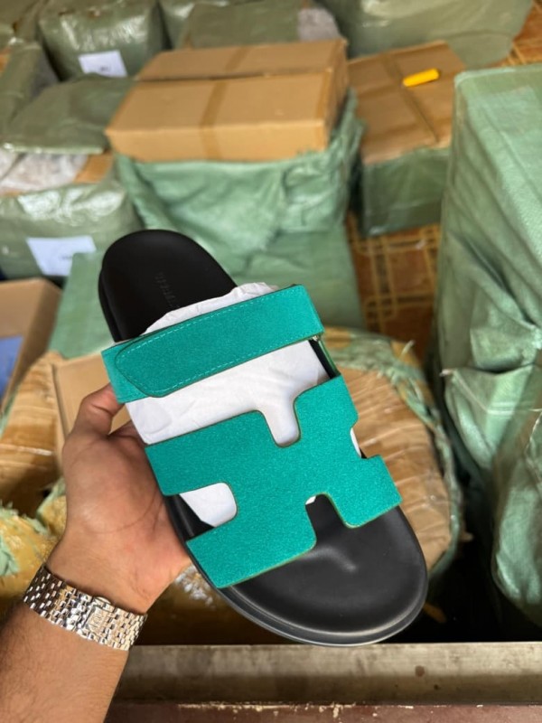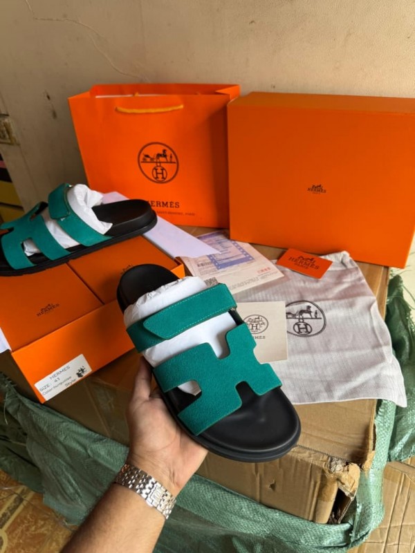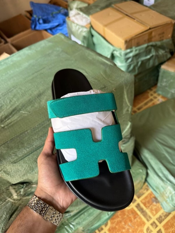 Hermes Chypre Supermaster Suede Flat Sandal Green For Men Premium Packing Stuff
